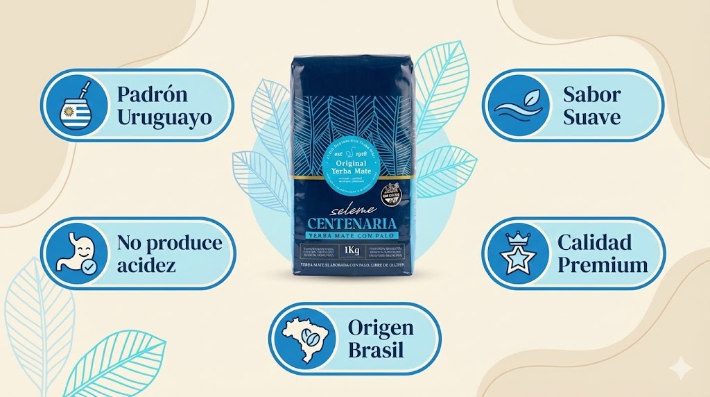 Disponible en presentaciones de 500 g y 1 kg, Seleme Centenaria combina tradición, calidad y un sabor único que se siente desde el primer mate.